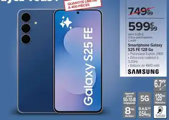 Actuellement en offre chez Carrefour : Smartphone Galaxy S25 FE 128 Go ✅ Valable du 3-02 au 23-02.