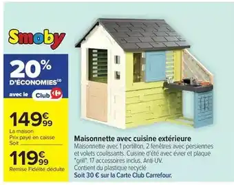Smoby - maisonnette avec cuisine extérieure offres et promotions en ligne chez Carrefour