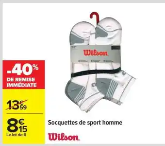 En plus de l'offre Socquettes de sport homme, Carrefour propose une large gamme de produits. Consultez le Catalogue Carrefour Drive hebdomadaire pour découvrir les meilleures offres et promotions. En plus de Socquettes de sport homme, il y a aussi : WILSON Socquettes de sport homme, PUMA Socquettes de sport homme & Socquettes.