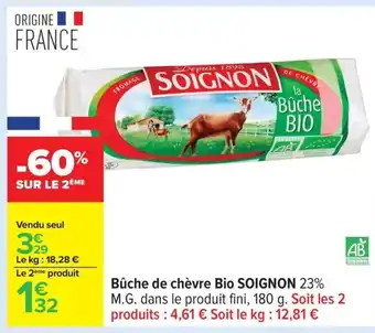 SOIGNON Bûche de chèvre Bio offres et promotions en ligne chez Carrefour