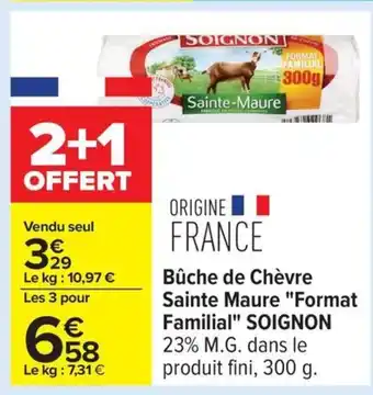 SOIGNON Bûche de Chèvre Sainte Maure Format Familial offres et promotions en ligne chez Carrefour