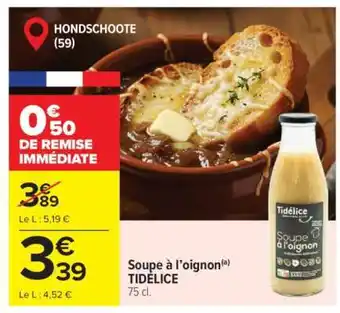 Actuellement en offre chez Carrefour : Soupe à l’oignon TIDELICE ✅ Valable du 17-02 au 4-03.