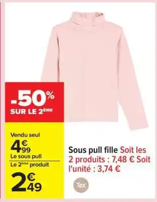Sous pull fille : offres et promos Carrefour à découvrir