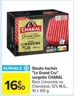Offre Steaks hachés Le Grand Cru surgelés CHARAL chez Carrefour