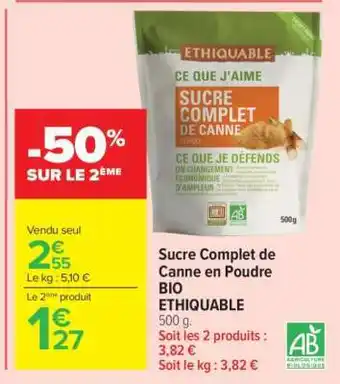 Offre SUCRE COMPLET DE CANNE EN POUDRE BIO ETHIQUABLE chez Carrefour