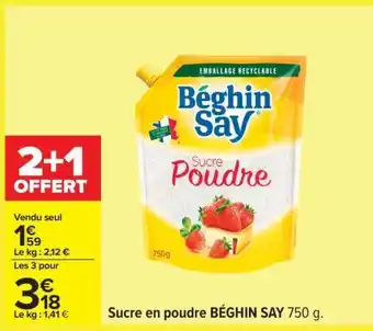 Actuellement en offre chez Carrefour : Sucre en poudre BÉGHIN SAY 750 g ✅ Valable du 20-01 au 2-02.