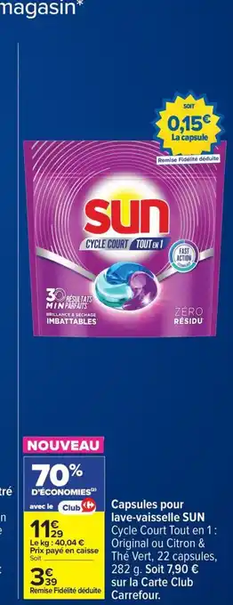 En plus de l'offre SUN Capsules pour lave-vaisselle, Carrefour propose une large gamme de produits. Consultez le Catalogue Carrefour hebdomadaire pour découvrir les meilleures offres et promotions. En plus de SUN Capsules pour lave-vaisselle, il y a aussi : SUN Capsules pour lave-vaisselle, SUN Capsules pour lave-vaisselle & Capsules Lave-vaisselle SUN.
