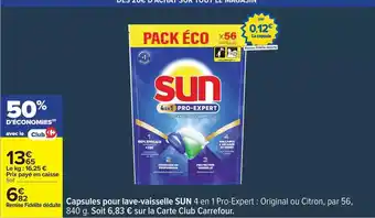 Sun - capsules pour lave-vaisselle offres et promotions en ligne chez Carrefour