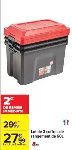 Actuellement en offre chez Carrefour : Sundis - lot de 3 coffres de rangement de 60l ✅ Valable du 10-03 au 23-03.