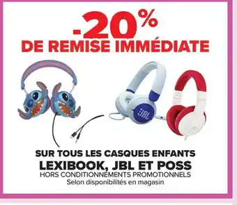 Sur tous les casques enfants lexibook, jbl et poss