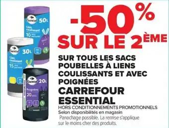 Y a-t-il une promotion sur SUR TOUS LES SACS POUBELLES À LIENS COULISSANTS ET AVEC POIGNÉES CARREFOUR ESSENTIAL la semaine prochaine chez Carrefour ?