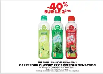 Actuellement en offre chez Carrefour : Sur tous les sirops bidon carrefour classic' et carrefour sensation ✅ Valable du 21-01 au 16-02.