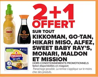 Sur tout kikkoman, go-tan, hikari miso, alfez, sweet baby ray's, monari, maldon et mission : offres et promos Carrefour à découvrir