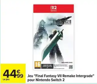 Actuellement en offre chez Carrefour : Switch - jeu final fantasy vii remake intergrade pour nintendo 2 ✅ Valable du 20-01 au 2-02.