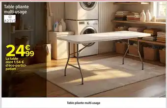En plus de l'offre Table pliante multi-usage, Carrefour propose une large gamme de produits. Consultez le Catalogue Carrefour hebdomadaire pour découvrir les meilleures offres et promotions. En plus de Table pliante multi-usage, il y a aussi : Table pliante multi-usage, Artis - table pliante multi-usage & Panier multi-usage.