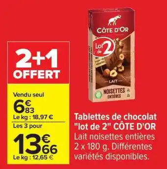 Tablettes de chocolat Lot de 2 CÔTE D'OR : offres et promos Carrefour à découvrir