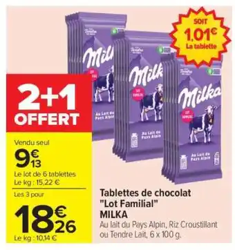Offre Tablettes de chocolat Lot Familial MILKA chez Carrefour