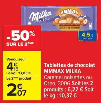 Actuellement en offre chez Carrefour : Tablettes de chocolat MMMAX MILKA ✅ Valable du 3-02 au 16-02.