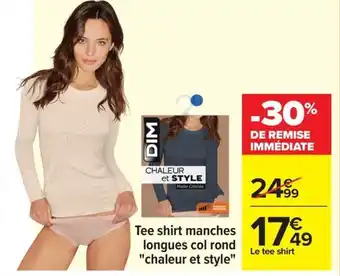 Offre Tee shirt manches longues col rond chaleur et style chez Carrefour
