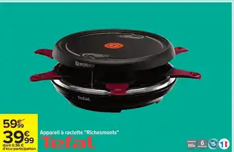 Actuellement en offre chez Carrefour : TEFAL Appareil à raclette Richesmonts ✅ Valable du 29-12 au 12-01.