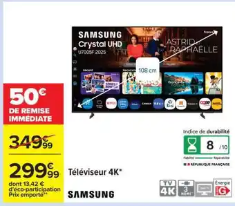 Actuellement en offre chez Carrefour : Téléviseur 4K* SAMSUNG ✅ Valable du 17-03 au 30-03.