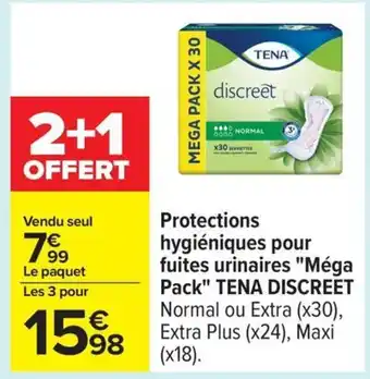 Offre TENA DISCREET Protections hygiéniques pour fuites urinaires Méga chez Carrefour