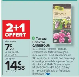 Actuellement en offre chez Carrefour : Terreau Horticole CARREFOUR ✅ Valable du 20-02 au 9-03.