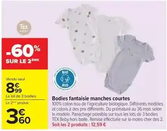 Actuellement en offre chez Carrefour : Tex - bodies fantaisie manches courtes ✅ Valable du 12-05 au 25-05.