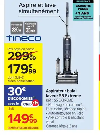 Offre TINECO Aspirateur balai laveur S5 Extreme chez Carrefour