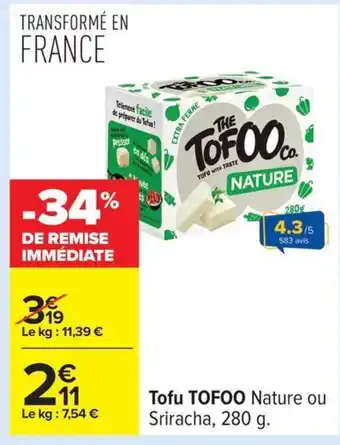 Offre TOFOO Tofu chez Carrefour