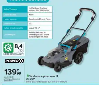 Tondeuse à gazon sans fil, 2 x 20V offres et promotions en ligne chez Carrefour