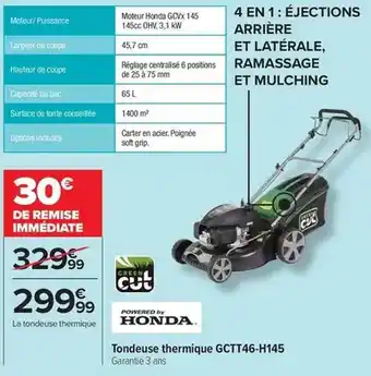 Offre Tondeuse thermique gctt46-h145 chez Carrefour