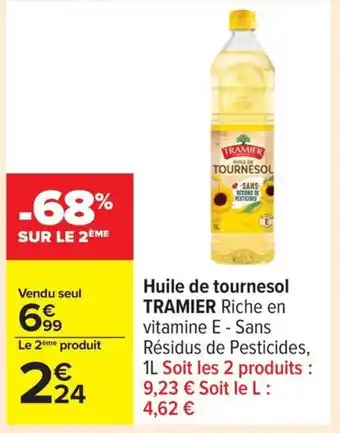 Actuellement en offre chez Carrefour : TRAMIER Huile de tournesol ✅ Valable du 27-01 au 9-02.
