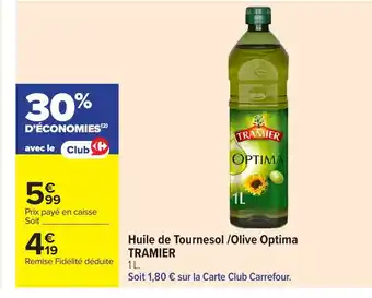 TRAMIER Huile de Tournesol /Olive Optima offres et promotions en ligne chez Carrefour