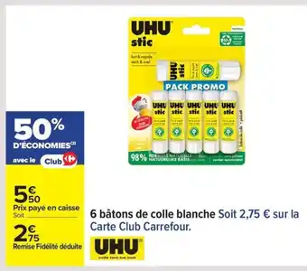 UHU 6 bâtons de colle blanche offres et promotions en ligne chez Carrefour