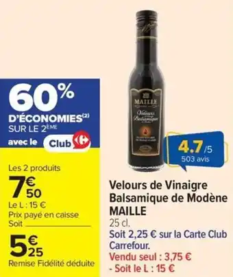 Offre Velours de Vinaigre Balsamique de Modène MAILLE chez Carrefour
