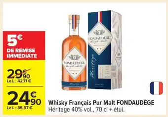 Actuellement en offre chez Carrefour : WHISKY FRANÇAIS PUR MALT “FONDAUDÈGE” ✅ Valable du 10-03 au 23-03.