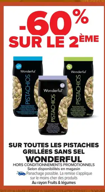 WONDERFUL Sur toutes les pistaches grillées sans sel : offres et promos Carrefour à découvrir