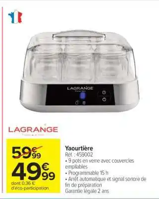 Actuellement en offre chez Carrefour : Yaourtière ✅ Valable du 6-01 au 26-01.