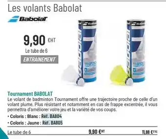 L'offre est disponible dans plusieurs magasins, vérifiez tous les produits pour obtenir le Babolat - tournament le moins cher. Si vous souhaitez savoir si l'article est en vente avec une plus grosse remise dans un autre magasin, consultez la catégorie 'Sport'. Ces offres pourraient aussi vous intéresser : X2 paires de chaussettes blanche/noir femme babolat, X1 paire de chaussettes noir femme babolat single & offre 3.