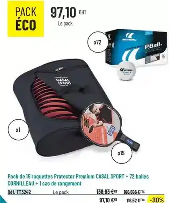 Casal sport/cornilleau - pack de 15 raquettes protector premium + 72 balles + 1 sac de rangement offres et promotions en ligne chez Casal Sport
