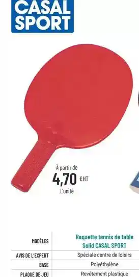 Actuellement en offre chez Casal Sport : Casal sport - raquette tennis de table solid ✅ Valable du 13-02 au 31-12.