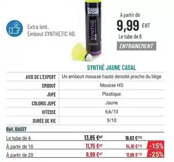 Casal sport - synthe jaune : offres et promos Casal Sport à découvrir