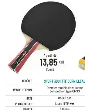 En plus de l'offre Cornilleau - sport 300 ittf, Casal Sport propose une large gamme de produits. Consultez le Catalogue Casal Sport hebdomadaire pour découvrir les meilleures offres et promotions. En plus de Cornilleau - sport 300 ittf, il y a aussi : Casal sport - challenge 3 it ittf, Casal sport/cornilleau - pack de 15 raquettes protector premium + 72 balles + 1 sac de rangement & Cornilleau - tacteo 50.