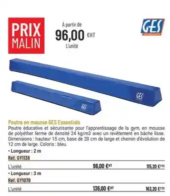 Le prix de l'offre Ges - poufre en mousse essentials se trouve également en haut de la page, ainsi que la date à laquelle l'offre est disponible. Vous pouvez également vérifier les prix dans le Catalogue Casal Sport actuel ou sur le site Internet de Casal Sport. Les offres vous permettent d'acheter les produits Casal Sport au prix le plus bas.