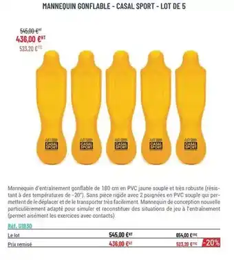 Actuellement en offre chez Casal Sport : Mannequin d'entrainement gonflable de 180 cm pvc jaune souple et très robuste ✅ Valable du 30-04 au 31-12.