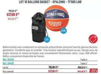 Actuellement en offre chez Casal Sport : Spalding - ballon basket avec révetenen en composite polyurethane structure ✅ Valable du 30-04 au 31-12.