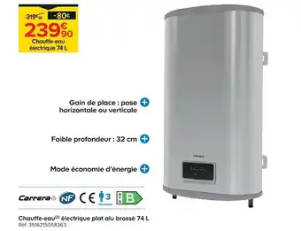 En plus de l'offre Chauffe-eau électrique plat alu brossé, Castorama propose une large gamme de produits. Consultez le Catalogue Castorama hebdomadaire pour découvrir les meilleures offres et promotions. En plus de Chauffe-eau électrique plat alu brossé, il y a aussi : Carrera chauffe-eau électrique plat alu brossé 74 l, Sauter - chauffe-eau électrique plat toyako 65l & Home creation - bougies chauffe-plat.