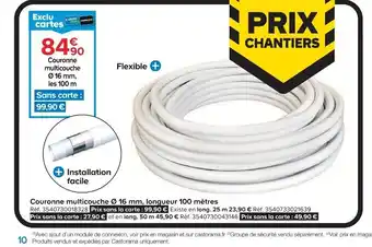 Actuellement en offre chez Castorama : Couronne multicouche 16 mm, longueur 100 mètres ✅ Valable du 25-02 au 17-03.