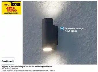 Actuellement en offre chez Castorama : Goodhome - applique murale tongoa gu10 25w ip44 gris foncé ✅ Valable du 15-04 au 5-05.